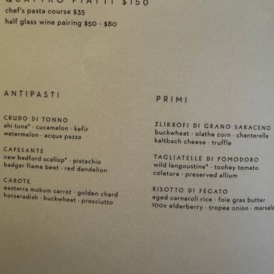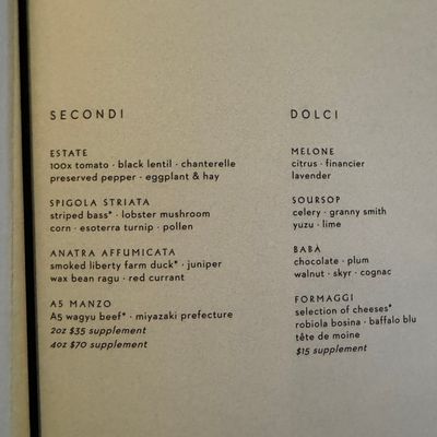 The menu focuses on high-end Italian dishes, featuring standout items like pheasant. Each course is prepared with precision to showcase sophisticated flavors and high-quality ingredients.food_potoo