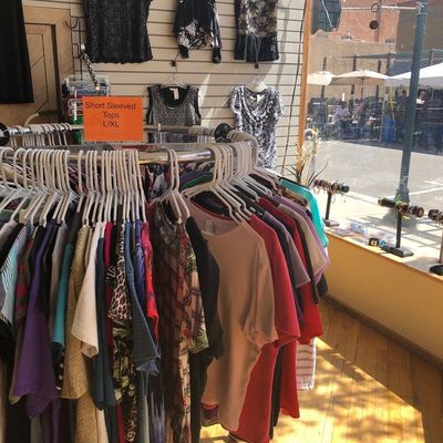 Unique resale shop offering a curated selection of clothing, accessories, and home goods. The store is known for its attractively organized inventory, often sorted by color and fabric, making for an enjoyable browsing experience.