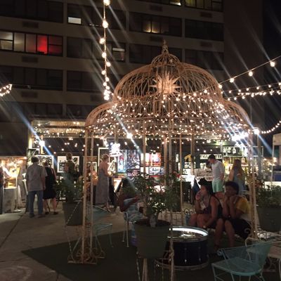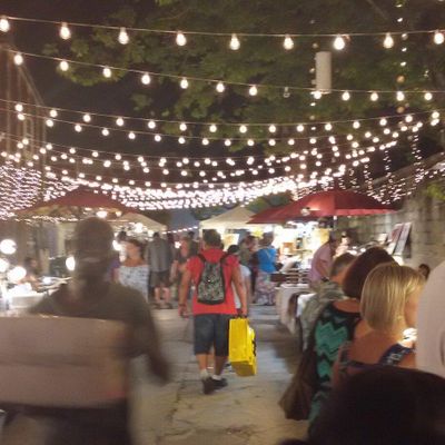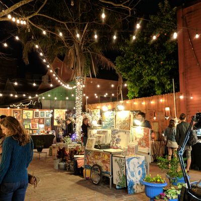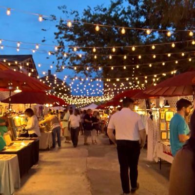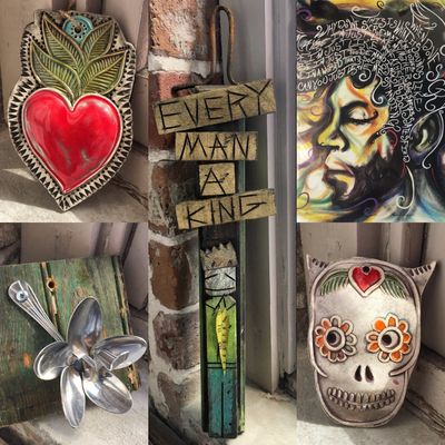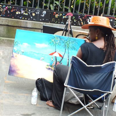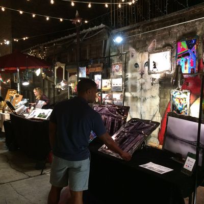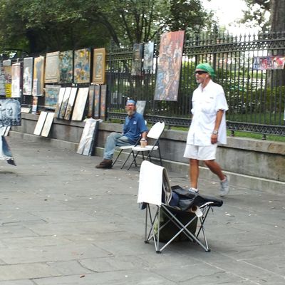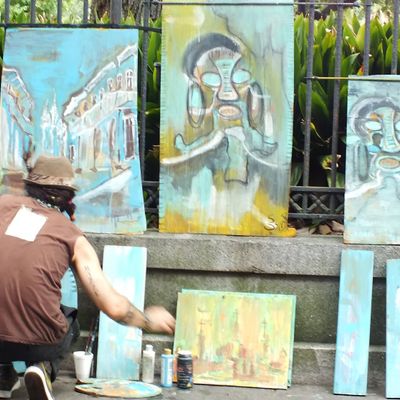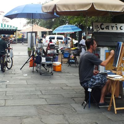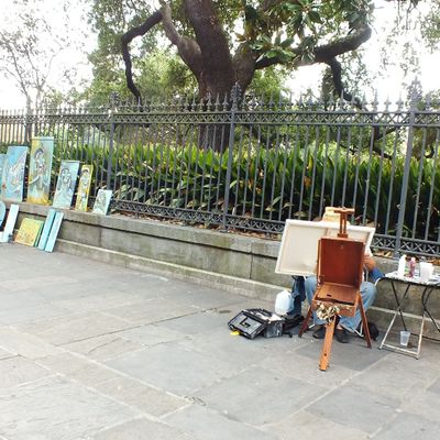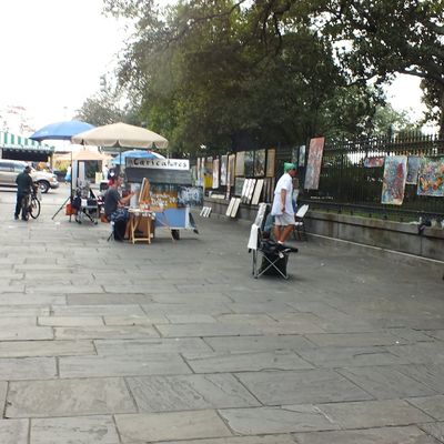 Outdoor market featuring a diverse array of local artists and their unique creations. Visitors can find a variety of crafts, including paintings, jewelry, photography, and custom clothing, with many pieces inspired by New Orleans culture. long_description