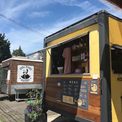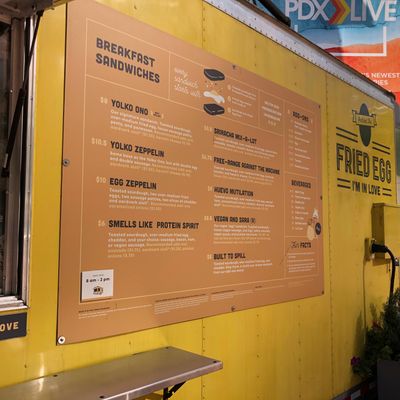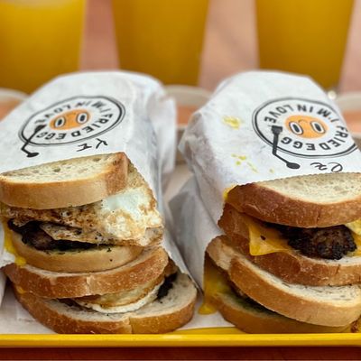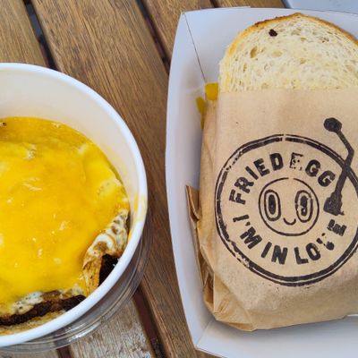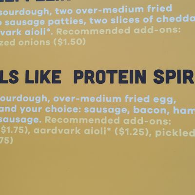 The cheerfully yellow cafe busts out an equally impressive breakfast burrito, filled with an omelet sort of egg, cheddar, Aardvark aioli, and a choice of protein.