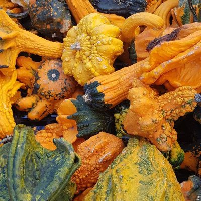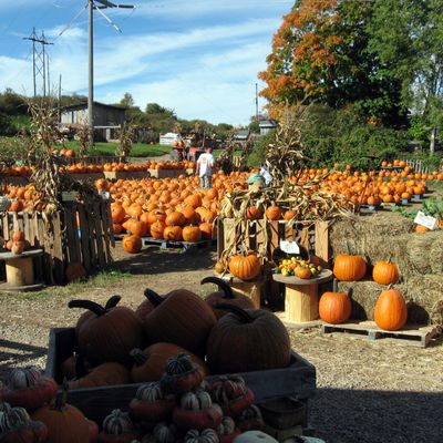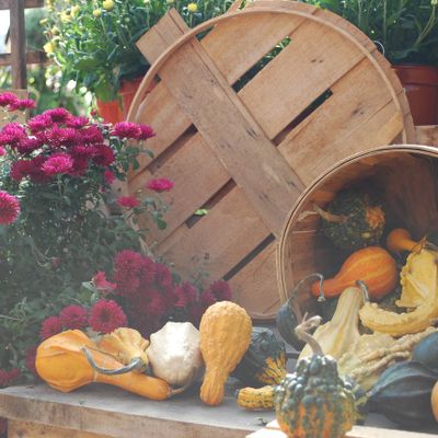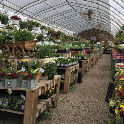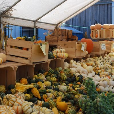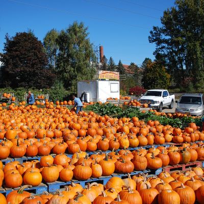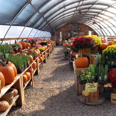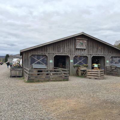 Farm stand offering a variety of seasonal produce, plants, and local goods like honey and pickles. Visitors can also find farm animals, a donut stand, and baked items.