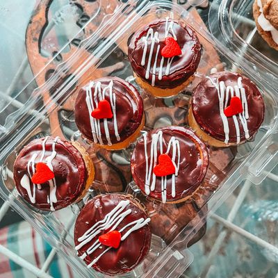 Small bakery offering cupcakes, cakes, and other sweet treats like cake pops and mini cheesecakes in a strip mall setting.