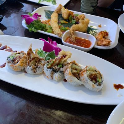Hibachi-style Japanese restaurant offering sushi and steak, with generous portions and a fun atmosphere, located in a somewhat less touristy shopping center.