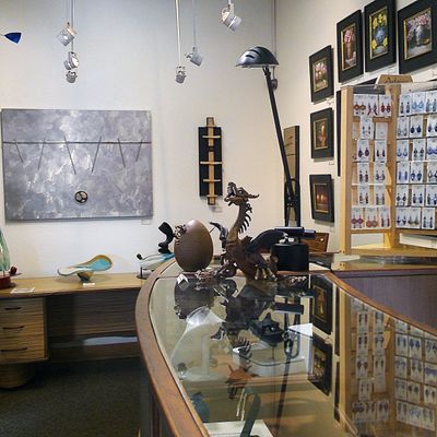Vibrant space showcasing a diverse range of local art, including paintings, glassworks, woodwork, and exquisite jewelry, with many items handcrafted by the owner. It also features a dedicated area for board games, tabletop gaming, and scheduled tournaments, making it a unique destination for both art enthusiasts and gamers.