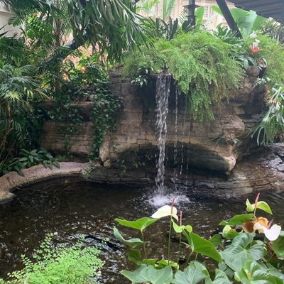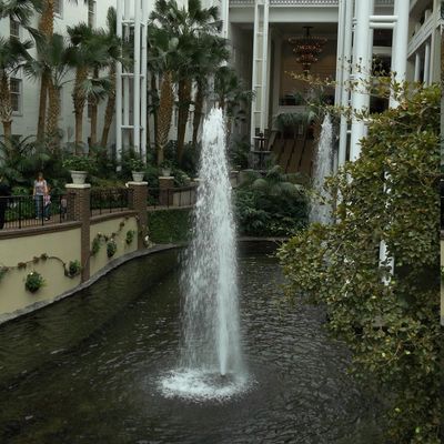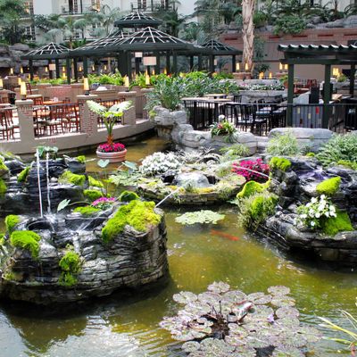 Vast hotel complex featuring impressive indoor atriums with lush greenery, waterfalls, and man-made rivers. It offers a wide array of amenities, including multiple pools, a water park, dining options, and extensive event spaces.