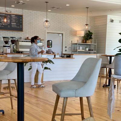 Neighborhood cafe offering coffee, pastries, and light lunch fare in a cozy, upscale-rustic setting with some inconsistencies in service.