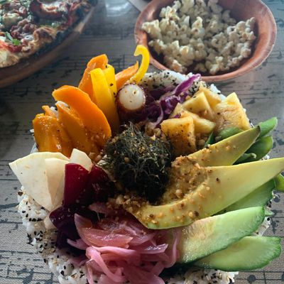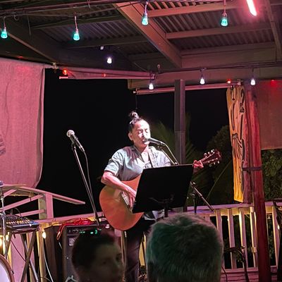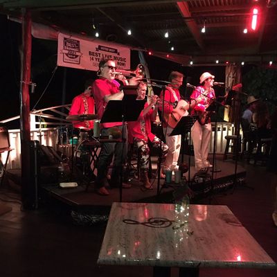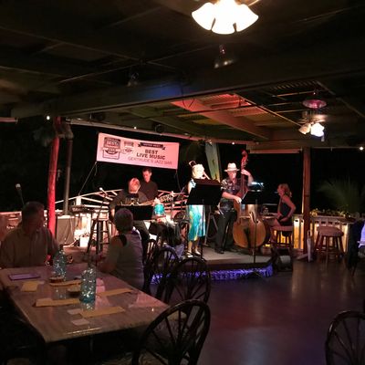 Family-run open-air dining bar with live music nightly, offering a vibrant atmosphere and limited food options including crepes and pizzas.
