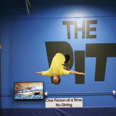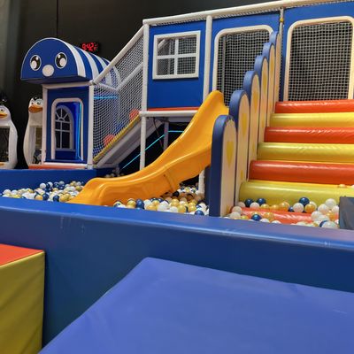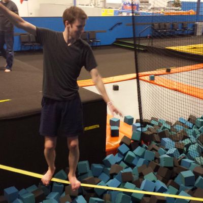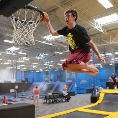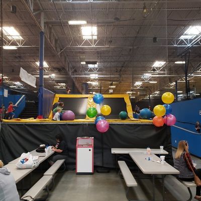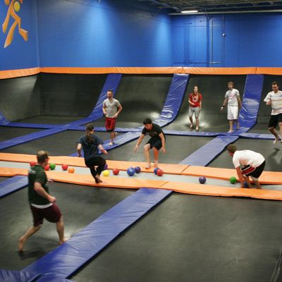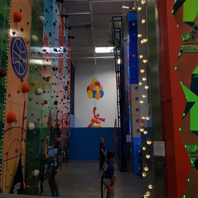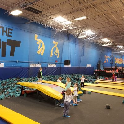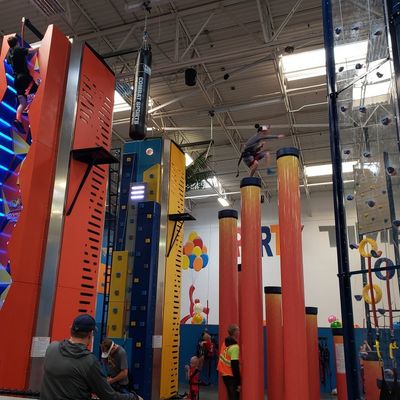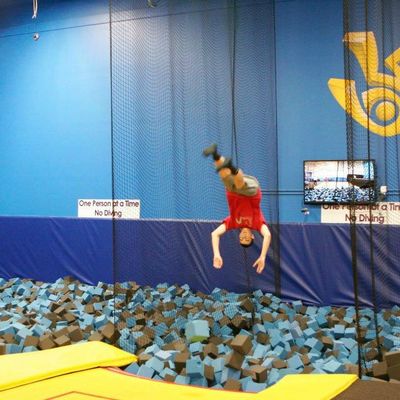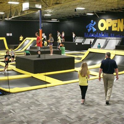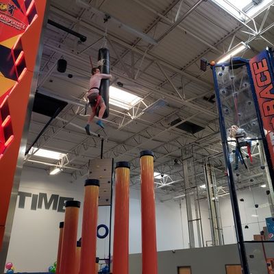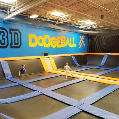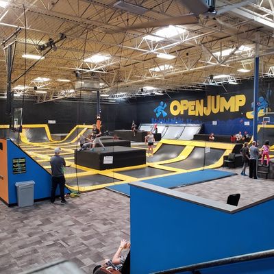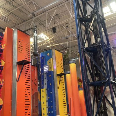 Indoor trampoline park offering a variety of attractions. Visitors can enjoy trampolines, a climbing area, a foam pit, and an obstacle course.