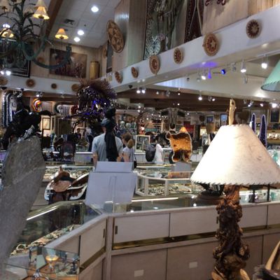 Large establishment offering a vast and diverse collection of Native American art, jewelry, pottery, and rugs. The gallery showcases handmade wares, with a particular emphasis on turquoise jewelry and traditional Southwestern decor.