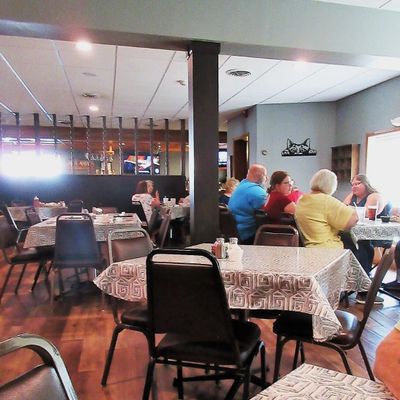 The spacious interior provides an open, roomy atmosphere typical of a classic roadside supper club. It feels like a substantial, unpretentious space perfect for hearty meals.ambiance_potoo
