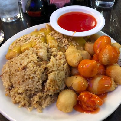 Historic building offering extensive pan-Asian cuisine, including Chinese, Japanese, and Thai dishes, plus sushi; known for generous portions but inconsistent takeout service.