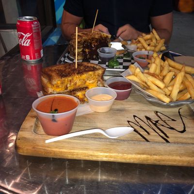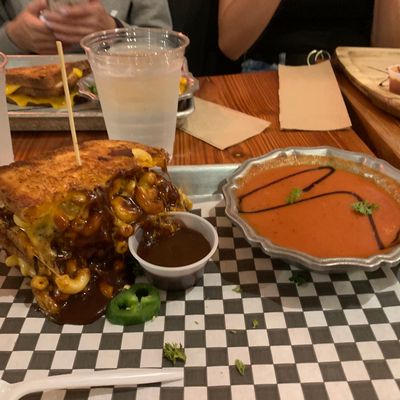 Funky, upscale American eatery in Northwood, offering gourmet grilled cheese sandwiches, mac & cheese, and other creative options with a charming atmosphere.