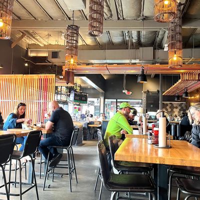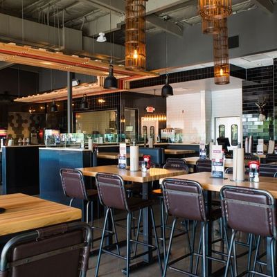 Lively American burger bar with a full bar, offering creative burgers, salads, and shakes in a casual setting.