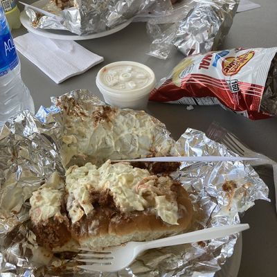 Enjoy a flavorful chili dog or try the Blue Plate Chicken Salad. For dessert, the chocolate-dipped key lime pie on a stick is a standout treat.food_potoo