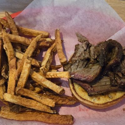 Bar and grill offering barbecue, burgers, and sandwiches in a friendly atmosphere, known for its delicious pulled pork and hand-cut fries.