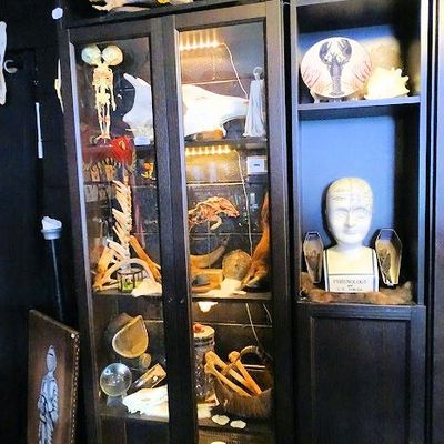 Uniquely curated shop filled with an eclectic array of items. The space is densely packed with taxidermy, metaphysical objects, vintage clothing, and peculiar curiosities.