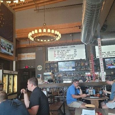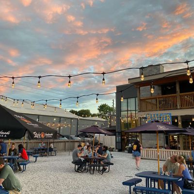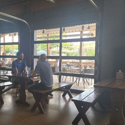 The atmosphere is lively and social, featuring a massive outdoor porch that accommodates everyone from families with kids to dog owners. It feels like a casual beer hall where the energy is high and the seating is spacious.ambiance_potoo
