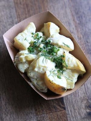 The menu focuses on Texas-style barbecue, including highly recommended burnt ends. You should also try the crispy and juicy fried tenderloin served with lettuce, mayo, and onions.food_potoo