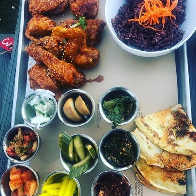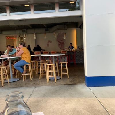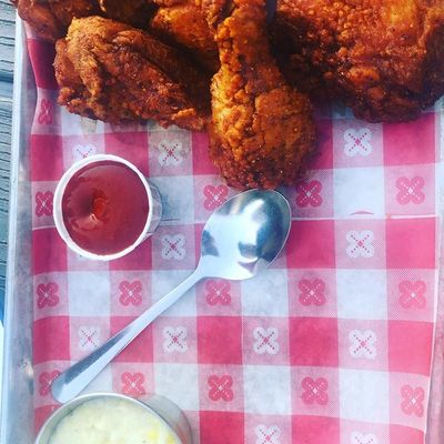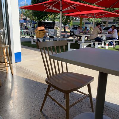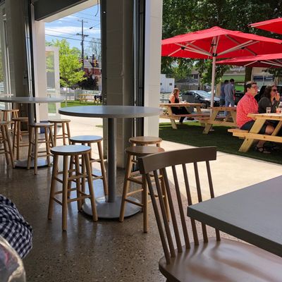 Casual American restaurant with a fun outdoor space, known for its fried chicken, creative cocktails, and surprisingly upscale menu—though some find it pricey.