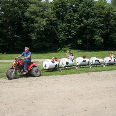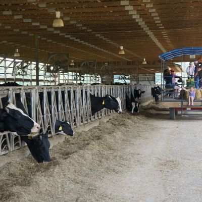 Farm offering fresh dairy products, including a selection of cheeses and milk with rotating flavors. Visitors can observe the milking process and learn about dairy operations.