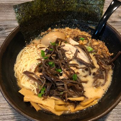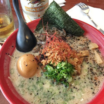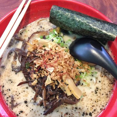 The menu features authentic Japanese ramen options such as Shio and Tonkotsu. The Hawaiian BBQ options are also a highlight, often served with substantial amounts of macaroni and rice.food_potoo