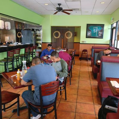 The atmosphere is straightforward and efficient, catering to diners looking for a quick, casual meal. It serves as a functional spot for a late lunch or a focused dining experience.ambiance_potoo