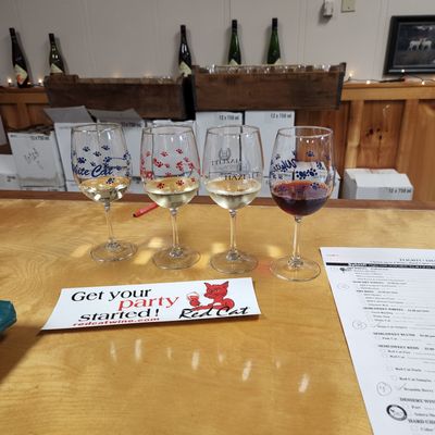 Winery offering a variety of wine tasting experiences, including flights and wine seltzers. The venue provides indoor seating at the bar and an outdoor patio, with some reviews noting table fireplaces.