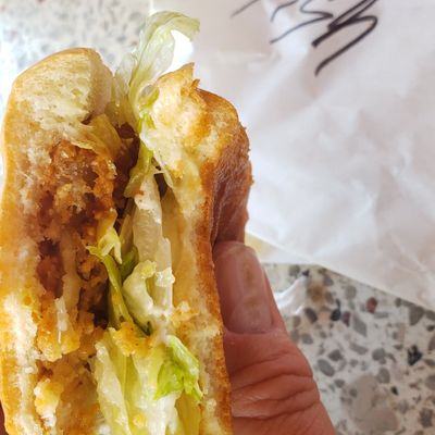 Fast-food burger joint with a walk-up window and outdoor seating, known for its tasty burgers, shakes, and surprisingly good fish options despite some inconsistencies in quality.