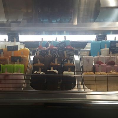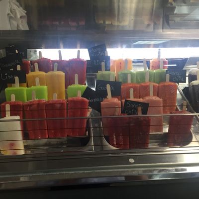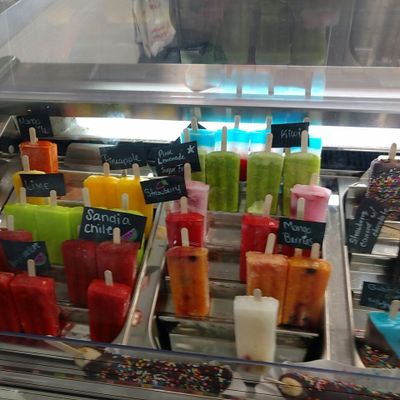 Small shop with unique, handcrafted ice cream, popsicles, and Mexican-inspired treats, located in a converted drive-in style building.