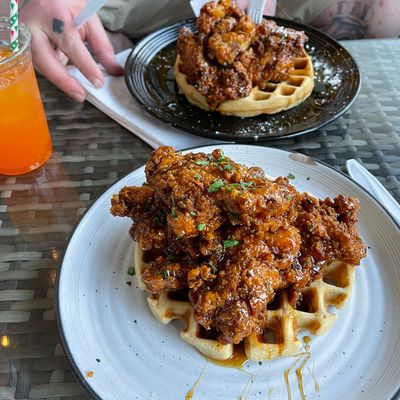 Family-run Mediterranean restaurant with outdoor seating, offering flavorful Greek dishes and exceptional hospitality, noted for its chicken and waffles and creative hummus.