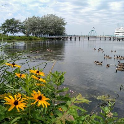 Scenic waterfront park that hosts numerous festivals and community events throughout the year. It features a large, canopied stage, a children's play area, and fishing access on Muskegon Lake.