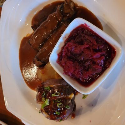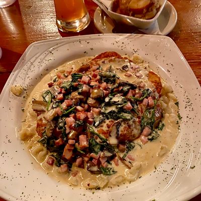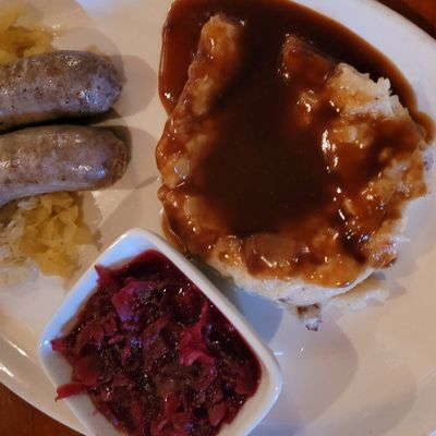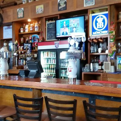 German restaurant and bar with a large beer selection, hearty portions, and traditional decor, offering a lively atmosphere and outdoor seating.