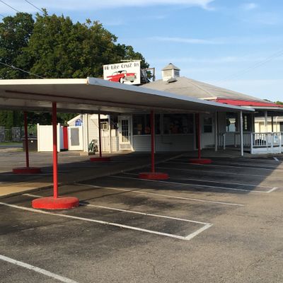 Classic seasonal drive-in restaurant serving American comfort food like burgers, shakes, and root beer floats with carhop service and outdoor seating.