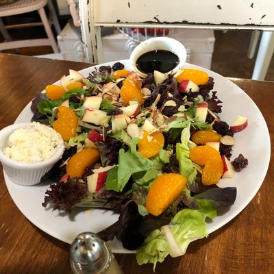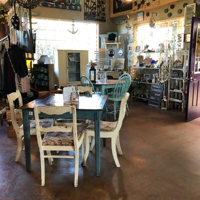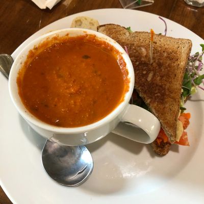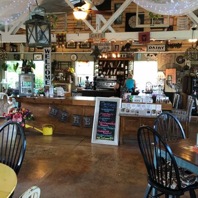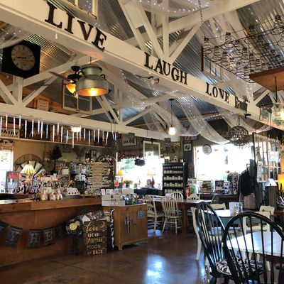 Quaint cafe in a garden center offering American cafe fare, homemade soups, and sandwiches with gluten-free options.