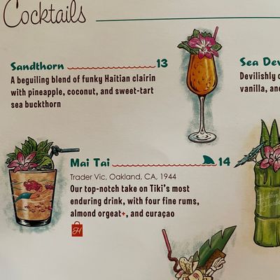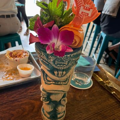 Enjoy tropical cocktails served in unique, themed cups with distinctive flavors. For snacks, the Brussels sprouts with maple syrup offer a sweet and savory profile.food_potoo