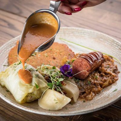Polish restaurant with a traditional European atmosphere, serving hearty portions of pierogi, potato pancakes, and other Polish specialties, sometimes with live music.
