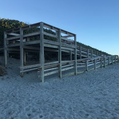 Public beach offering a clean and well-maintained environment for visitors. It features boardwalks with ramps for easy beach access, outdoor showers, and restrooms.