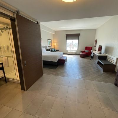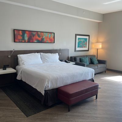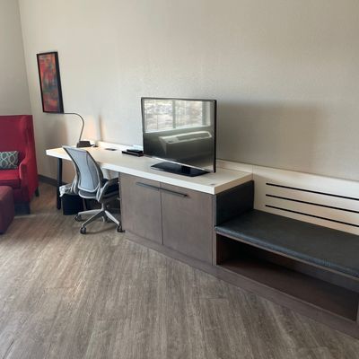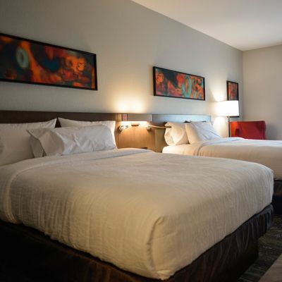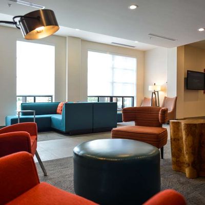 Hotel chain property offering comfortable and clean rooms. It features a nice lobby with ample seating and a pool that guests enjoy.