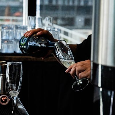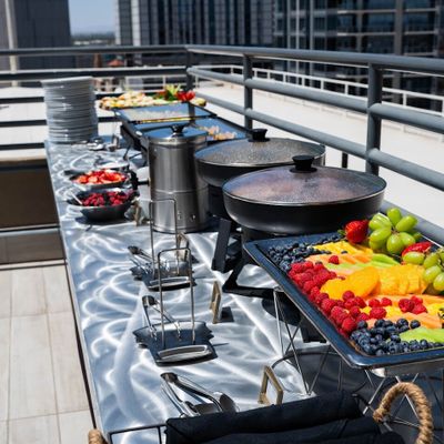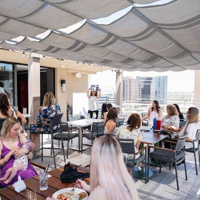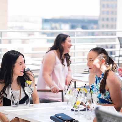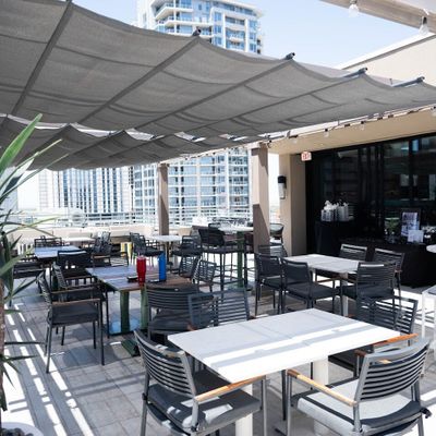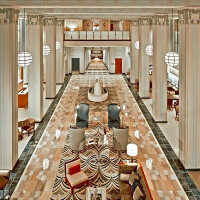 The atmosphere blends historic charm with modern comfort, characterized by a grand lobby with a relaxing fireplace. A stylish rooftop bar on the 13th floor and a classic lobby bar provide distinct social spaces.ambiance_potoo