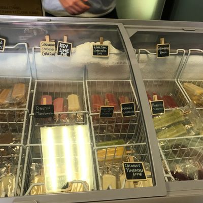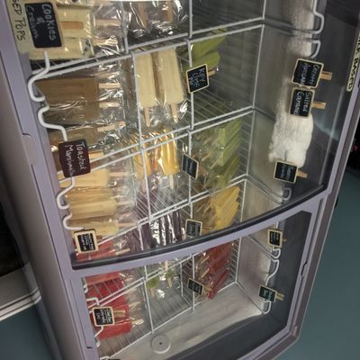 Small, artisan popsicle shop near the farmers market offering unique, organic flavors of popsicles, shaved ice, and slushies.