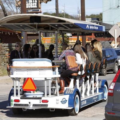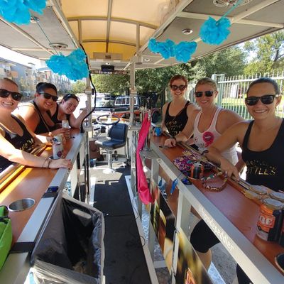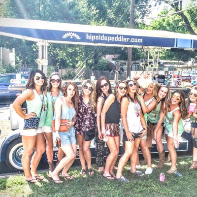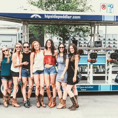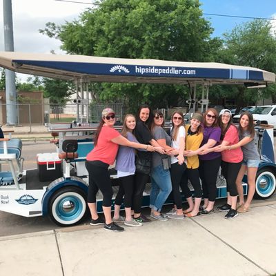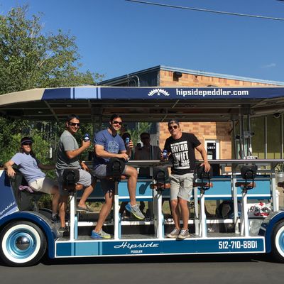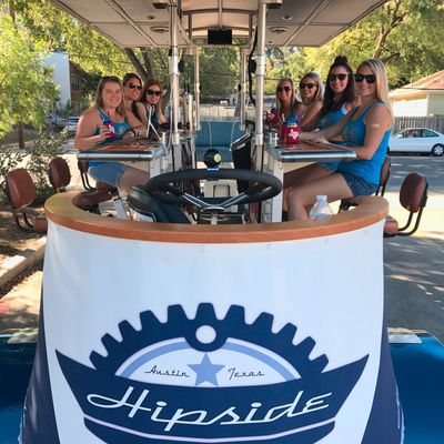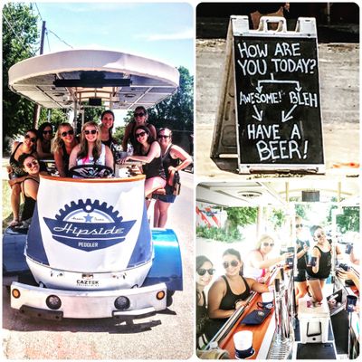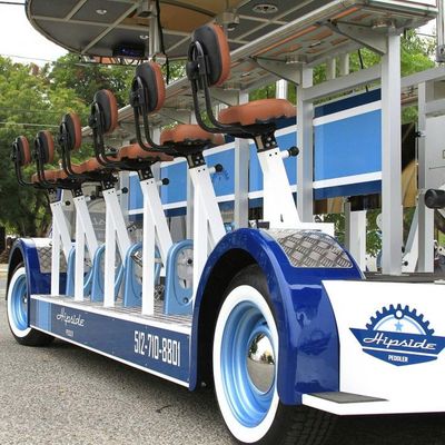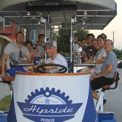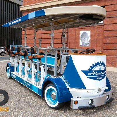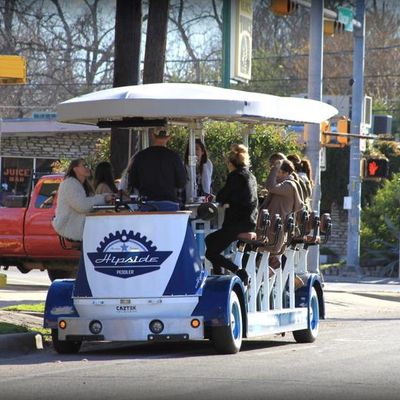 Hipside Peddler offers a unique group experience on a pedal-powered bar. Guests can bring their own beverages and enjoy music while touring various local establishments.