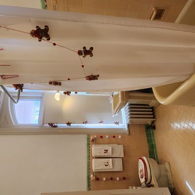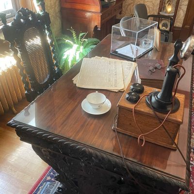 The atmosphere is dignified and educational, offering a well-preserved look at early 20th-century life. Visitors can explore the stately rooms and even see the unique remains of a basement fallout shelter.ambiance_potoo