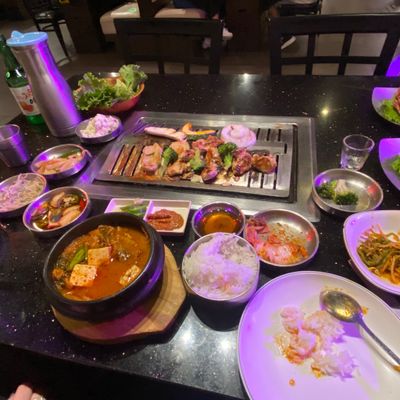 Uptown Korean barbecue restaurant with a lively atmosphere, offering marinated meats, ample side dishes, and attentive service. long_description