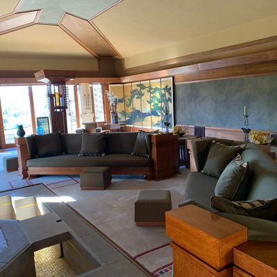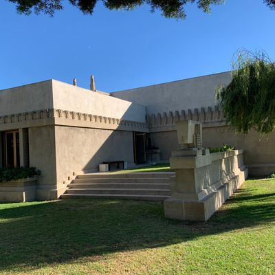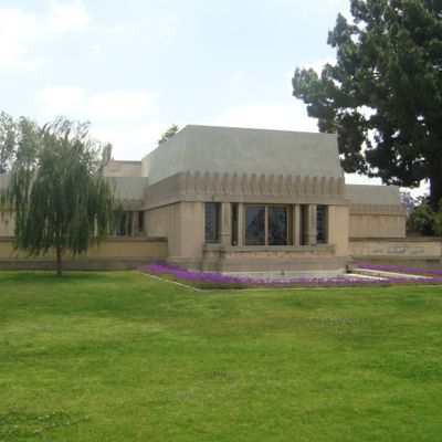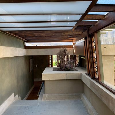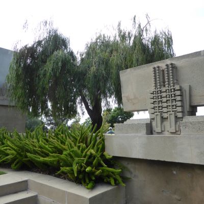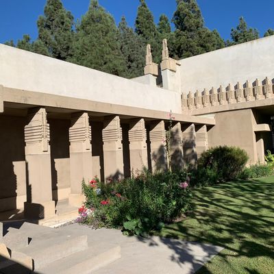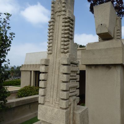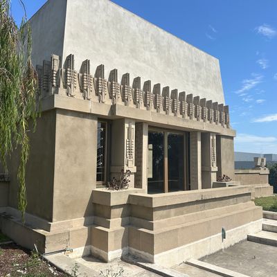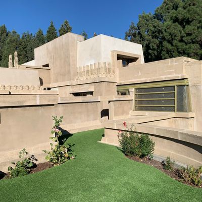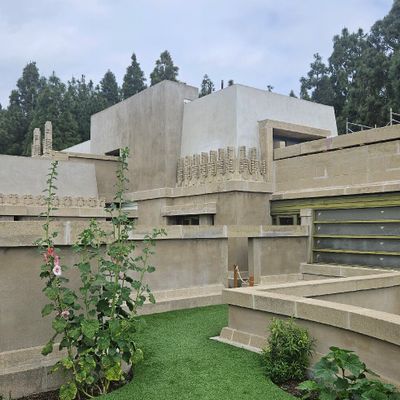 Landmark architectural residence designed by Frank Lloyd Wright, showcasing Mayan Revival influences blended with Asian and Egyptian elements. This historic home features a unique integration of indoor and outdoor spaces, with a central garden court and rooftop terraces offering expansive views.