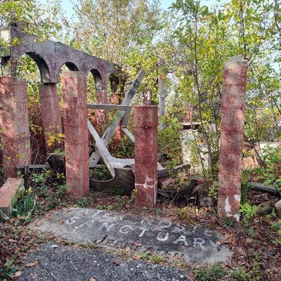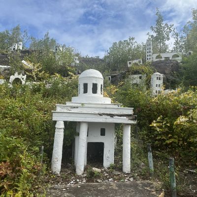 Former religious theme park featuring scattered ruins and statues. While parts of the site are overgrown and in disrepair, visitors can explore the grounds, enjoy scenic views from the hilltop, and appreciate the historical remnants.