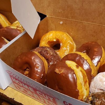 Local cafe offering fresh donuts and coffee in a simple, friendly setting.