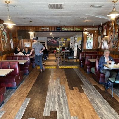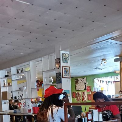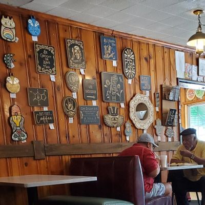 The interior is filled with art and a distinct retro-country style that feels incredibly cool and visually engaging. It maintains a classic diner atmosphere with a focus on local charm.ambiance_potoo