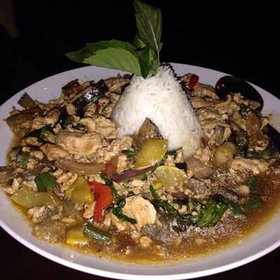 The menu features authentic dishes like the chicken massaman and crispy spring rolls. For those who enjoy aromatic flavors, the stir fry basil is a standout option.food_potoo