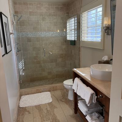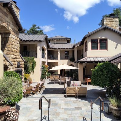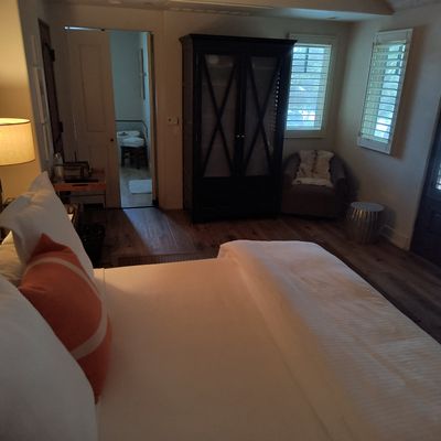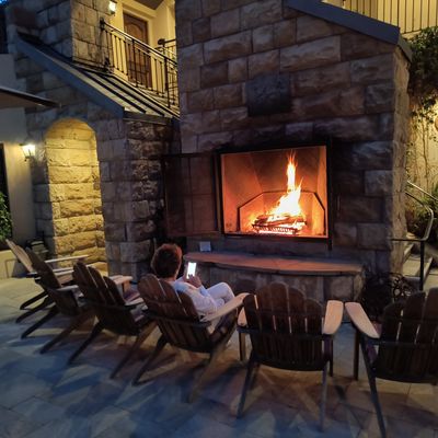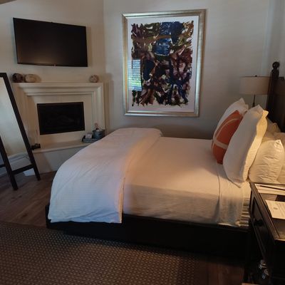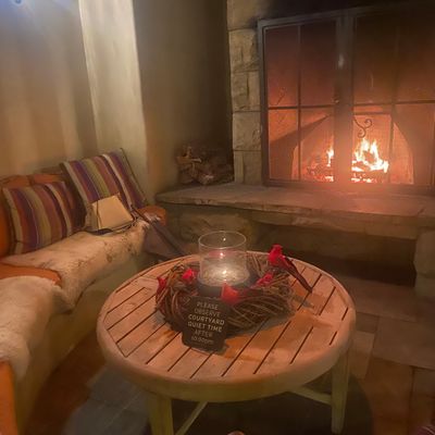 The atmosphere is intimate and upscale, providing a quiet retreat in the center of town. Rooms often feature cozy elements like gas fireplaces and spacious, elegant bathrooms that create a sense of refined comfort.ambiance_potoo