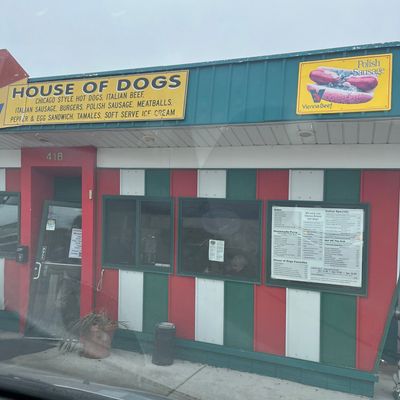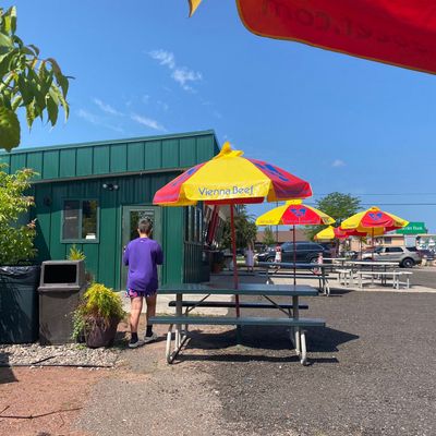 Casual fast food restaurant in Eagle River offering Chicago-style hot dogs, Italian beef, and other American fare with a focus on sausages, featuring both indoor and outdoor seating.